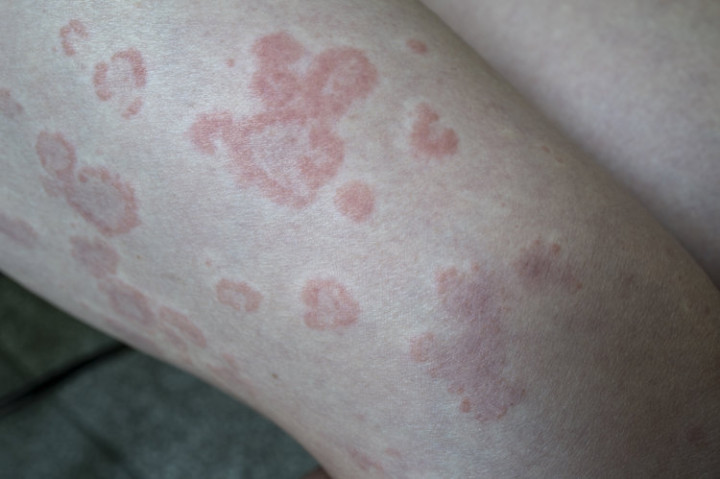 皮肤上出现红斑一般与皮炎、湿疹探究,但若是红斑呈环状握住扩散,中间消退但角落仍在膨胀,伴有剧烈的瘙痒,则可能与乳腺癌、肝癌探究。若是伴有皮肤潮红、肿胀、脱屑,则可能与白血病、淋巴癌探究。